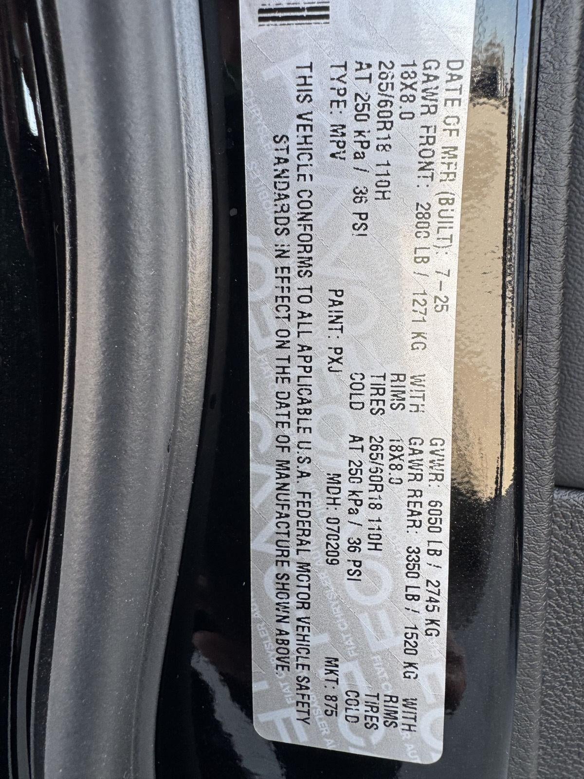 ENGINE: 3.6L V6 24V VVT UPG I W/ESS, TRANSMISSION: 8-SPEED AUTOMATIC (850RE), QUICK ORDER PACKAGE 22E, WHEELS: 18"" X 8"" POLISHED/PAINTED ALUMINUM, TIRES: 265/60R18 BSW A/S LRR, MONOTONE PAINT, DIAMOND BLACK CRYSTAL PEARLCOAT, GLOBAL BLACK, CAPRI LEATHERETTE SEATS, DUAL-PANE PANORAMIC SUNROOF, FRONT LICENSE PLATE BRACKET, MODEL YEAR TRACKING