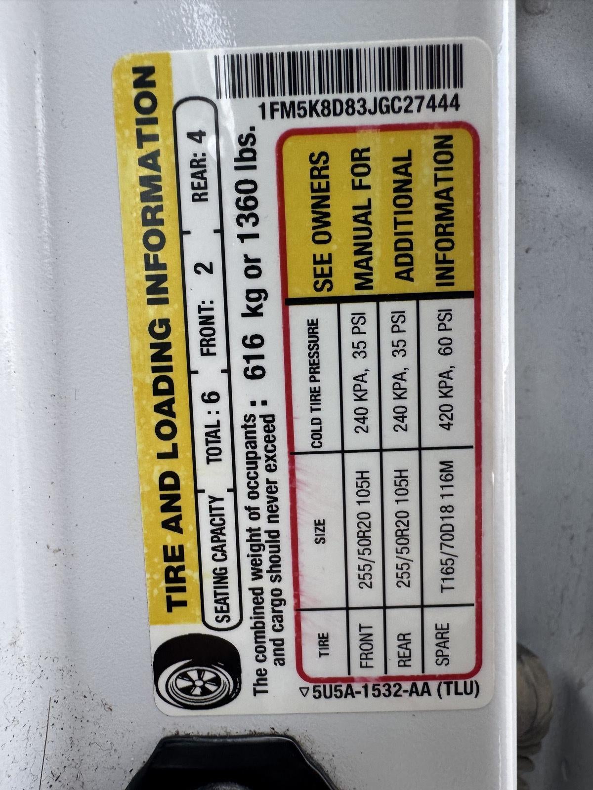 - Tires: P245/60R18 AS BSW