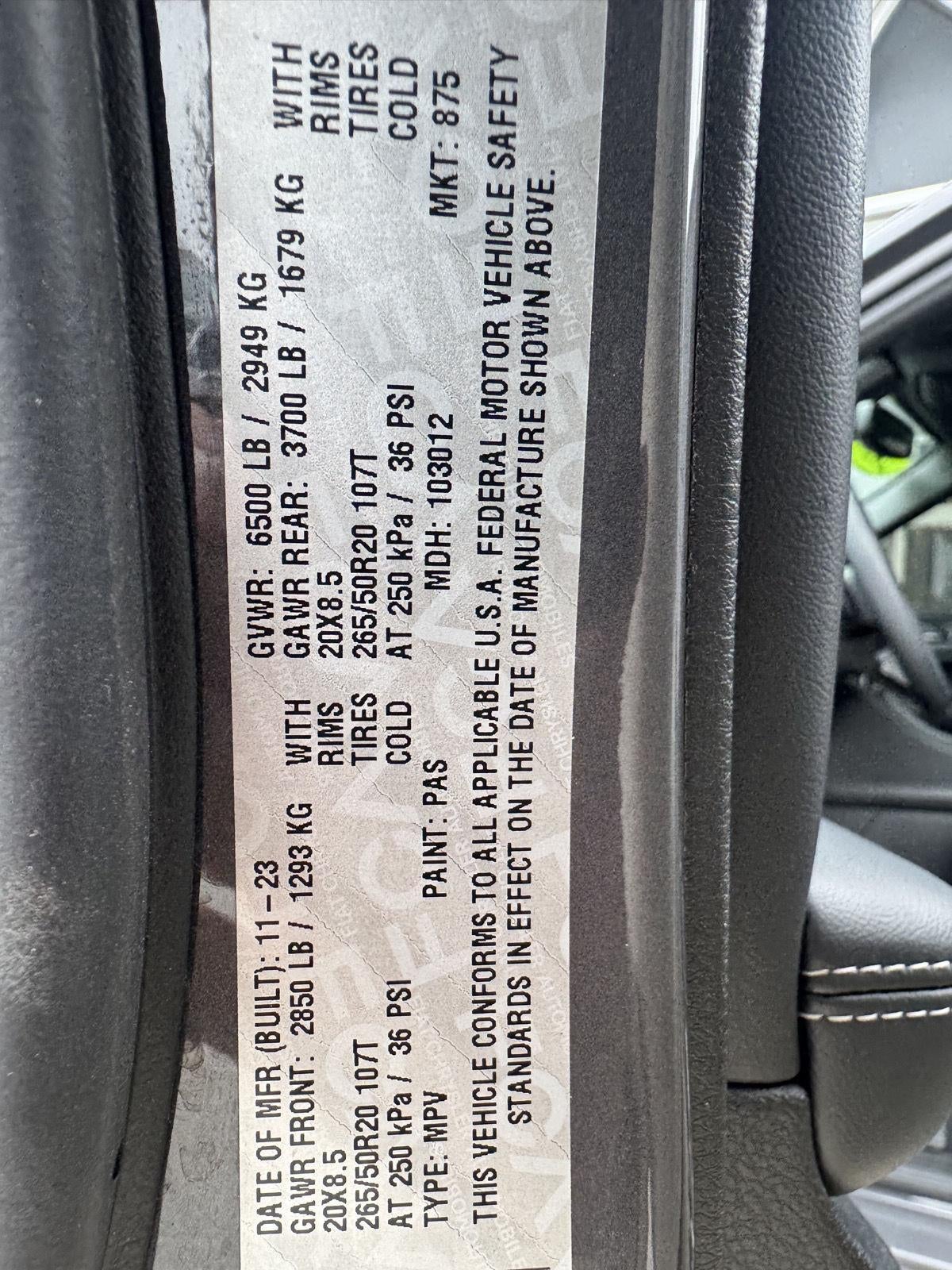 - Rear Tire Size: P265/50HR20